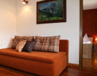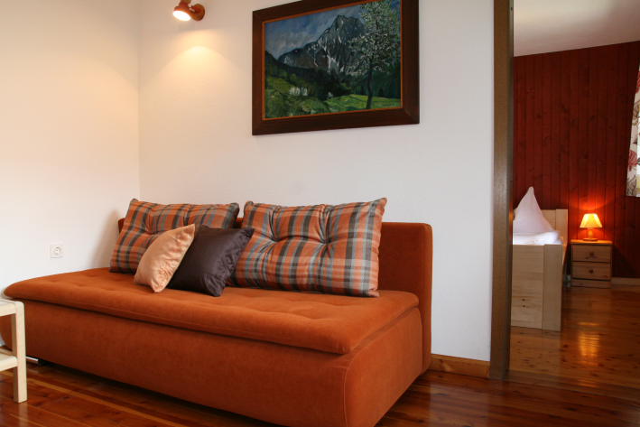 Die Küche ist komplett ausgestattet und bietet einen Kühlschrank und einen Gas / Elektroherd mit Backofen. Im Wohnzimmer befindet sich ein SAT-TV und ein Schlafsofa, welches zusätzlich als Bett dienen kann. Das Badezimmer ist mit einer Dusche, einem Bidet und WC ausgestattet. Frische Handtücher werden gestellt. Das Wohnzimmer öffnet sich zu einem Balkon mit wunderschönem Ausblick und die Möglichkeit zu verweilen, einen Kaffee zu trinken, ein Buch zu lesen oder einfach nur den wunderbaren Vogelgesang zu lauschen.