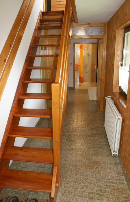 Über eine kurze Treppe gelangen Sie durch ein Vorzimmer in die Wohnung.